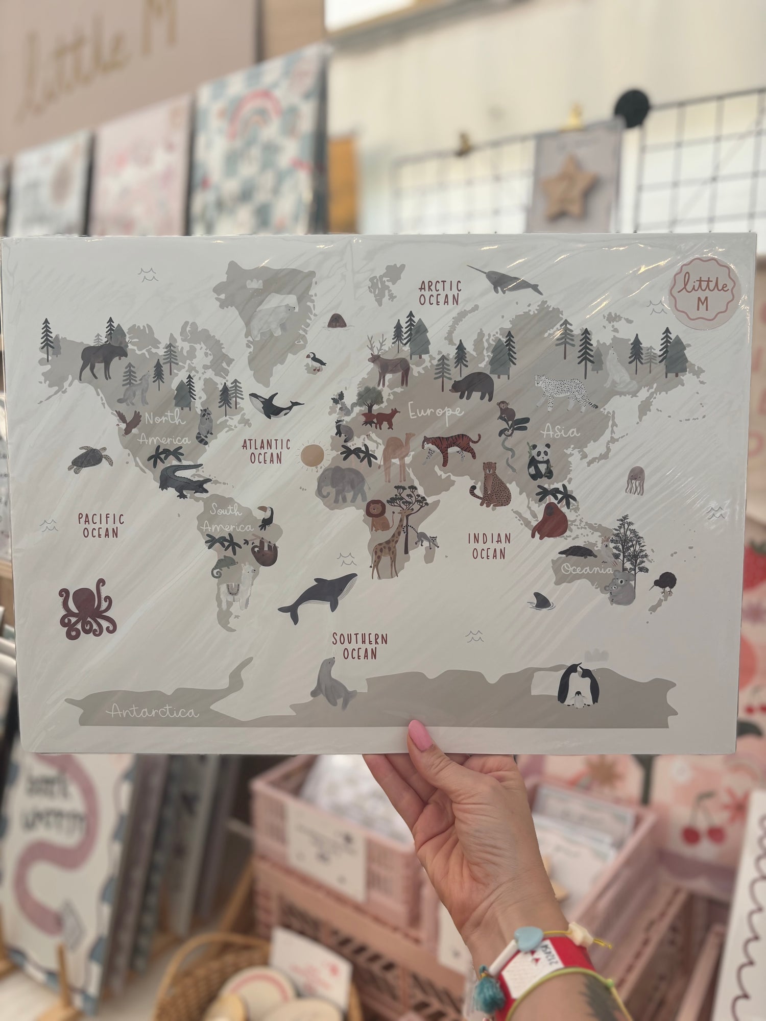 Animal World Map Print Stone A3 Birthday Sale