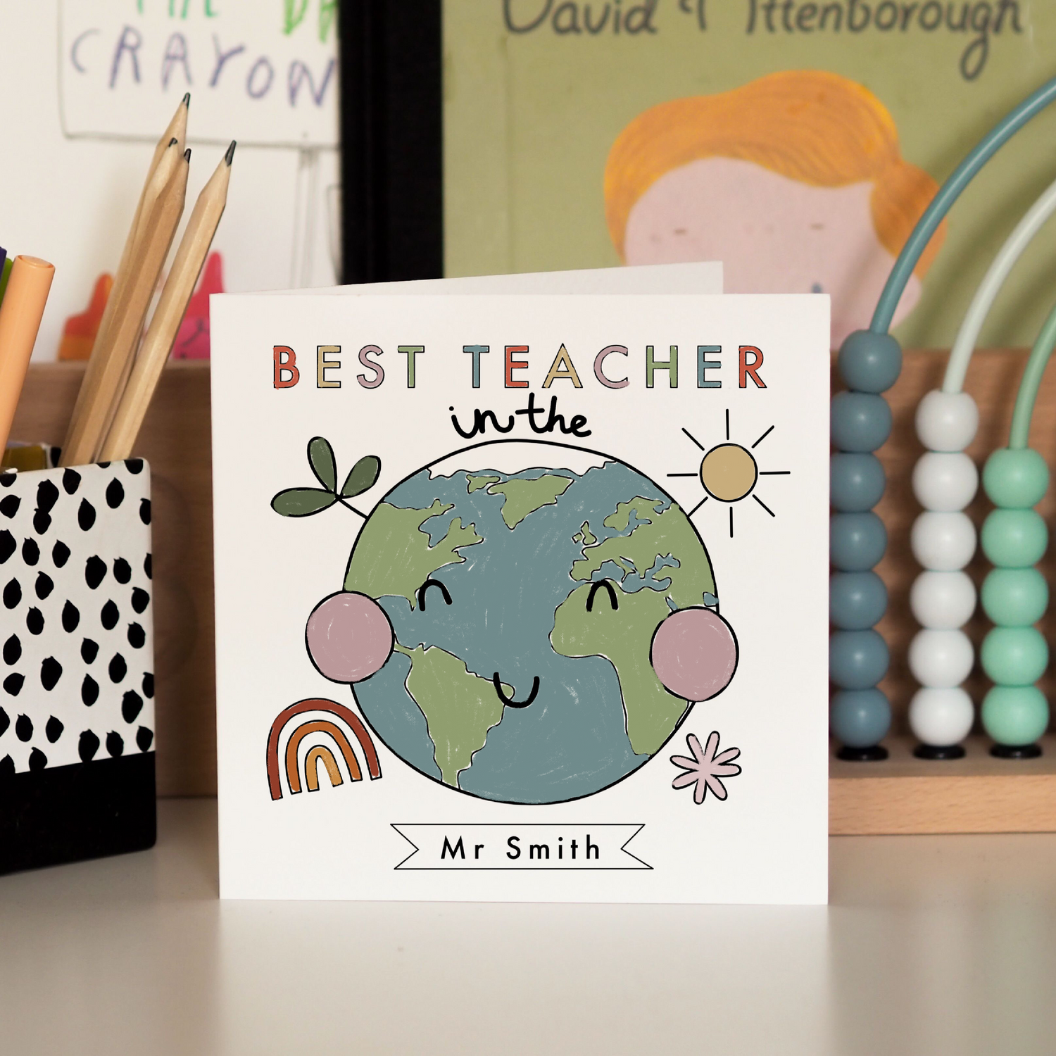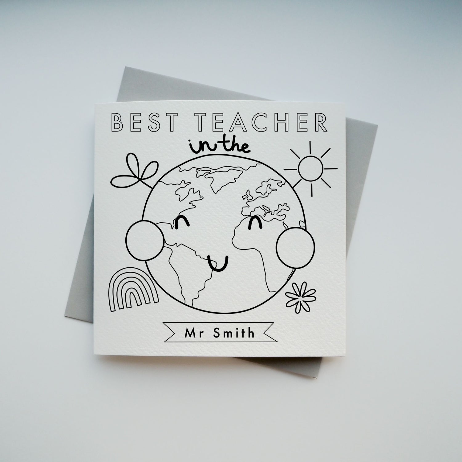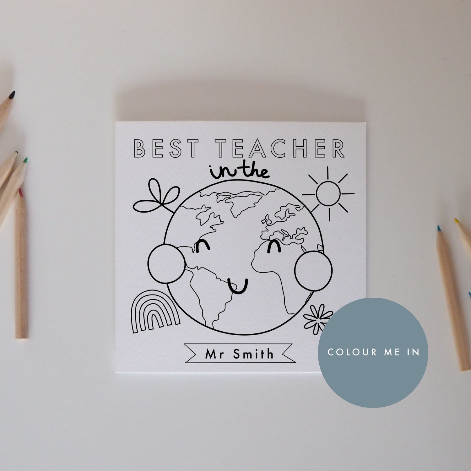 Best Teacher In The World Colouring In Card - Can Be Personalised/ Multipack available