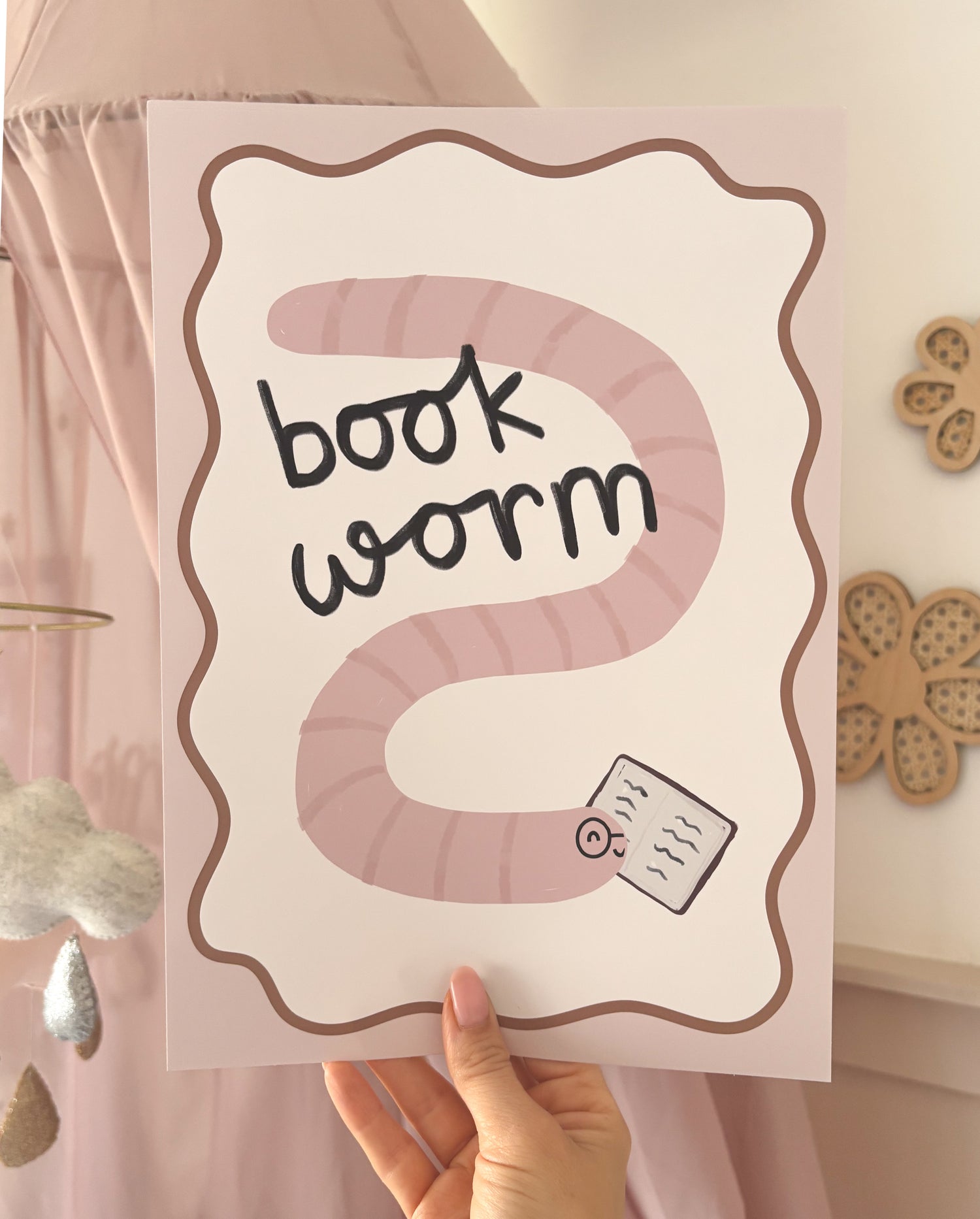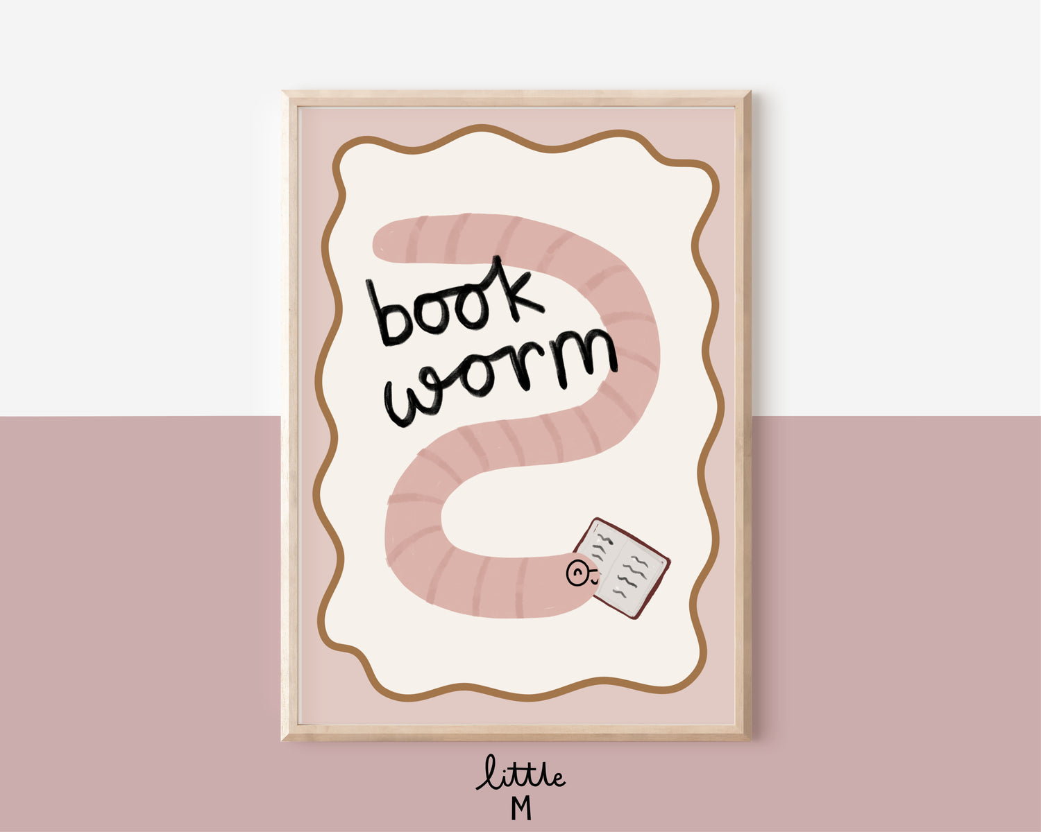 Book Worm pink Print - background colour can be changed