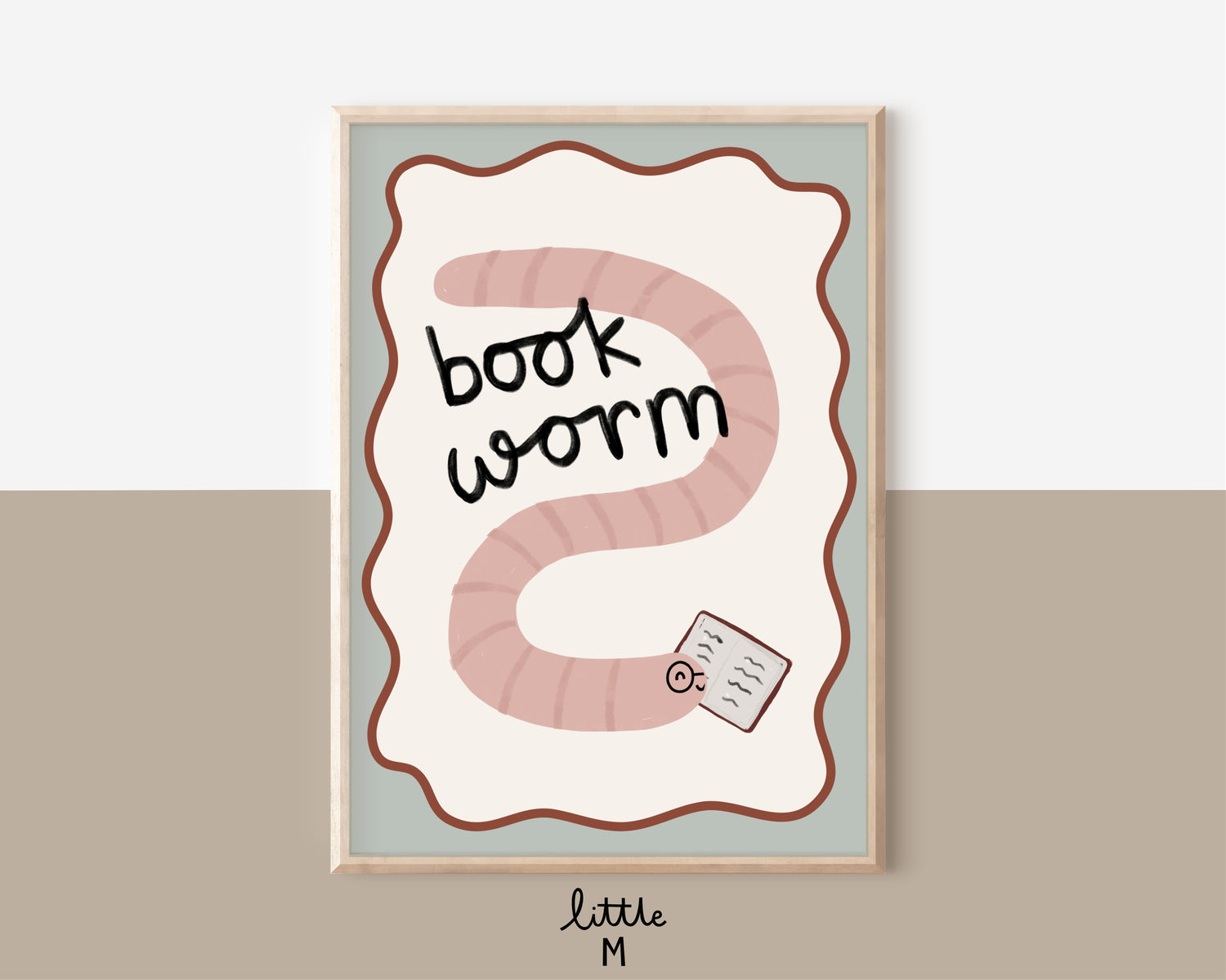 Book Worm sage Print - background colour can be changed