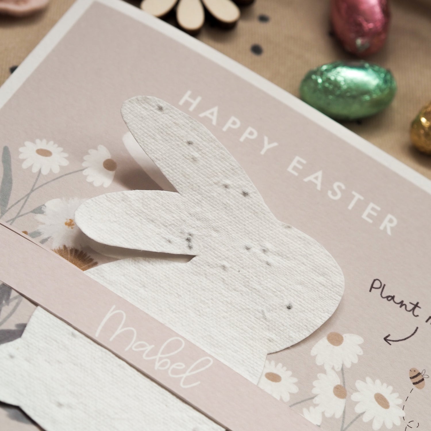 Easter Day Card With Plantable Seed Bunny Dandelions - Can Be Personalised