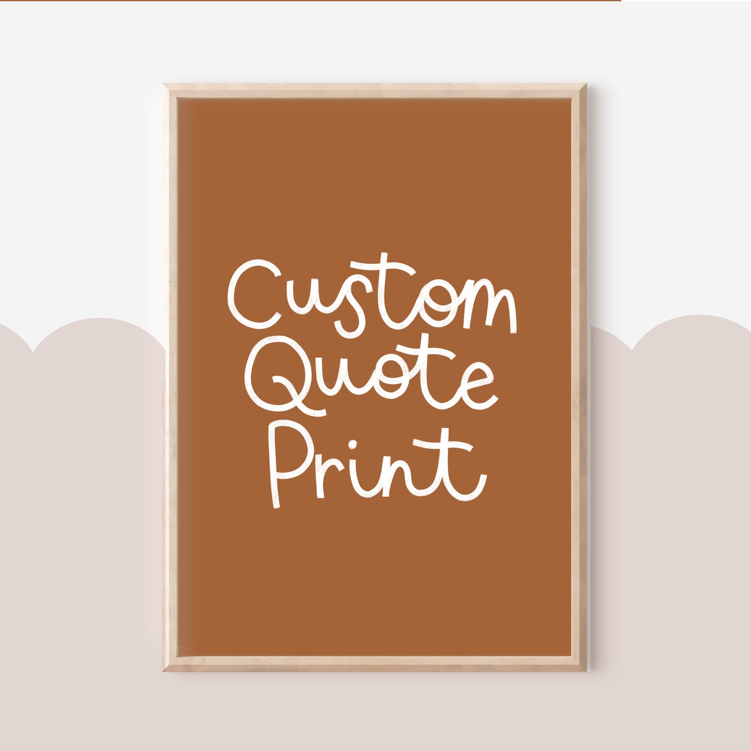 You can choose any quote with your choice of coloured background and text. Once you have placed your order you can email me with your chosen quote and what colours you would like. If you would like a different colour not shown on my swatch chart then please send me a colour swatch to match to.