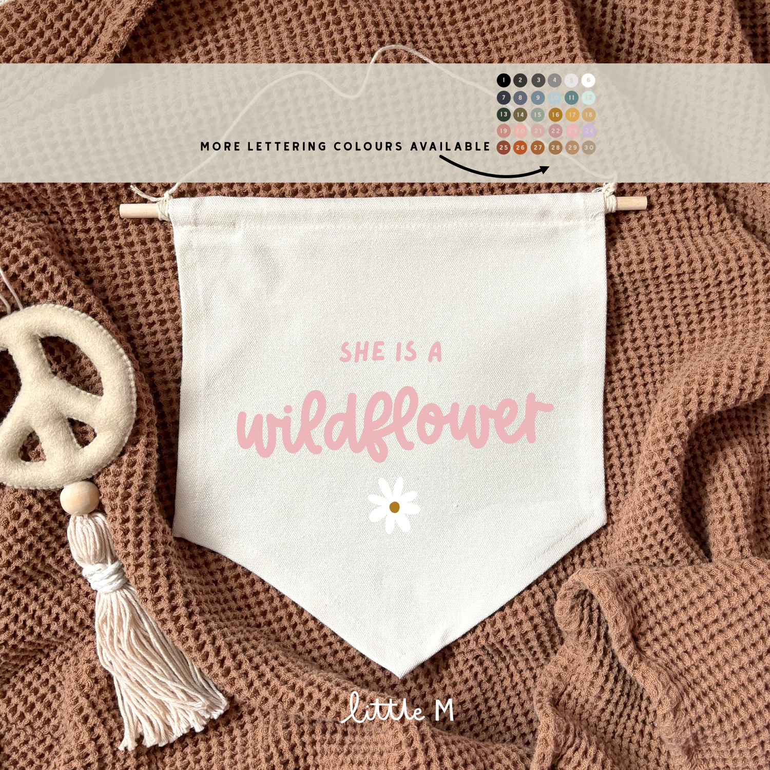 She’s A Wildflower Hanging Banner - 24x24cm more lettering colours available