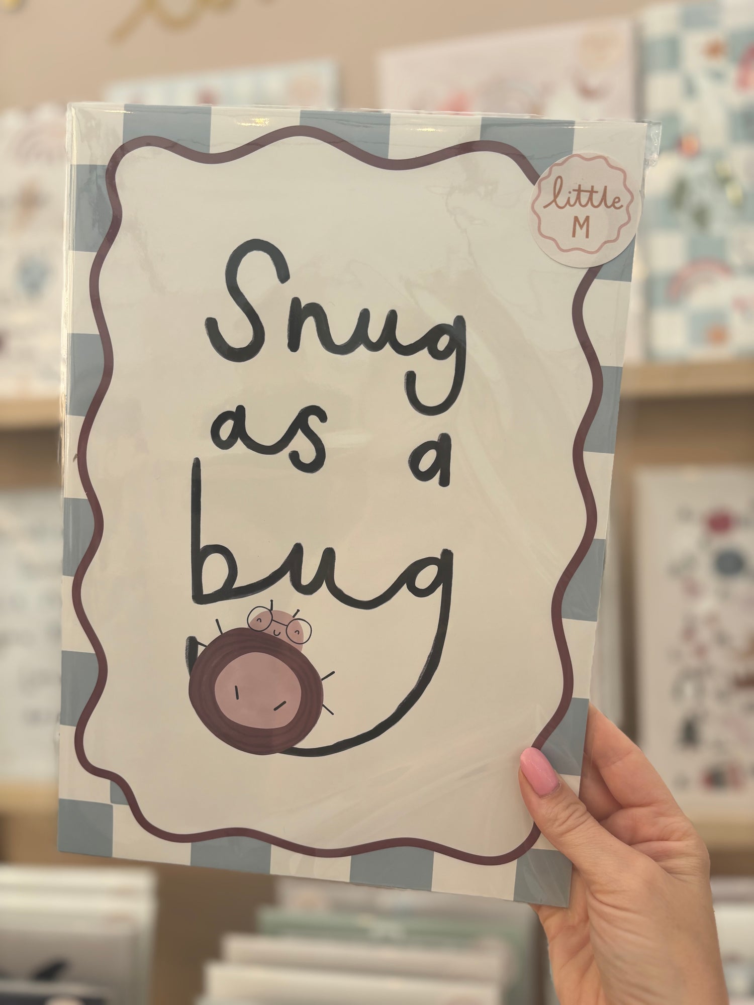 Snug as a bug blue checkerboard Print A4 Birthday Sale