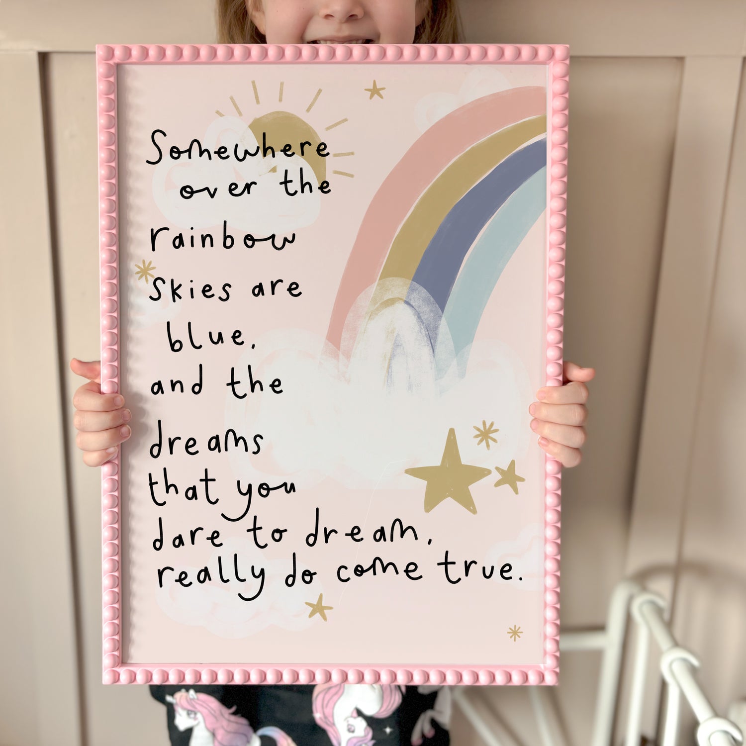 Somewhere Over The Rainbow Print. More background colours available.