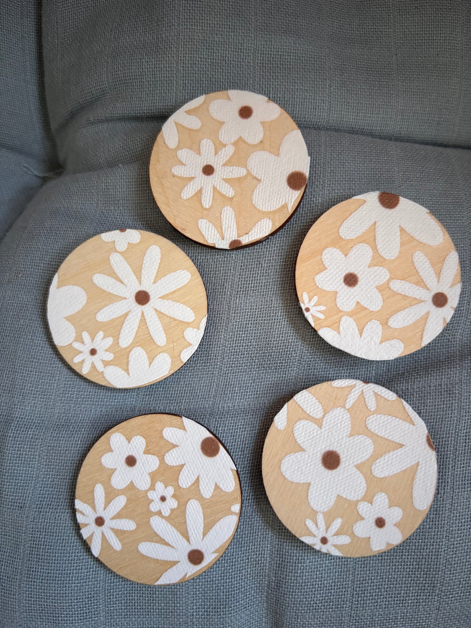 Wooden self adhesive hook with white daisy pattern Sample Sale