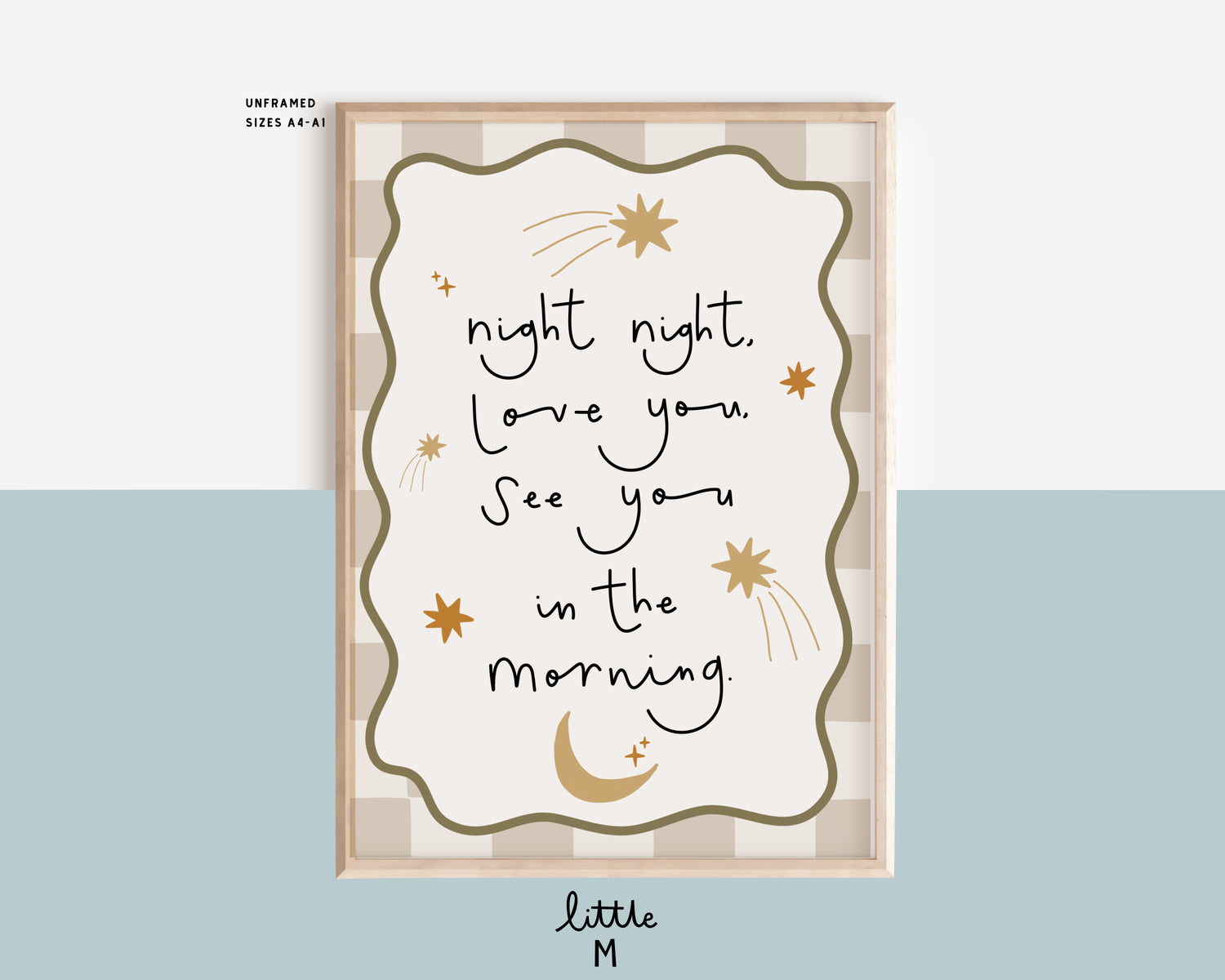 Night Night, Love You, See You In The Morning Print - more background colours available